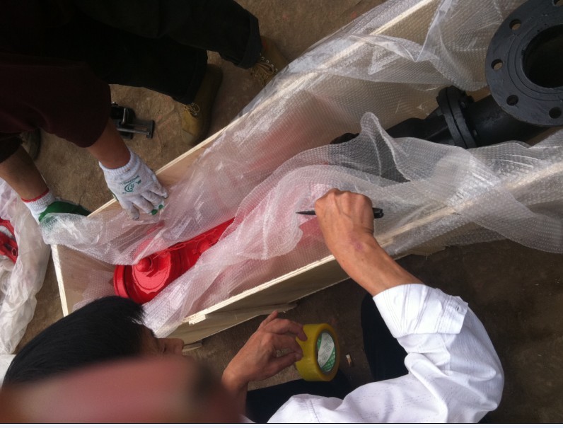 出口泰國(guó)的一批消火栓生產(chǎn)包裝完畢
