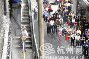 “剛才,有個人拿著水槍沖上室外樓梯,往著火的煙囪噴水,大概_是廚師,真勇猛,威武啊!”有圍觀的人說。