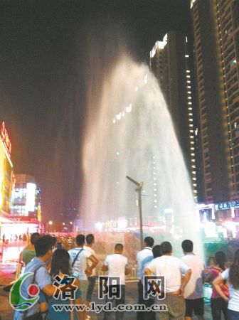 原來,遼寧路人防工程施工時,不慎弄“傷”了此處開挖路面下供水管道上的消防栓,引起爆管。隨后,洛陽北控水務(wù)集團(tuán)維修人員立刻趕到現(xiàn)場維修。20時47分許,“噴泉”消失